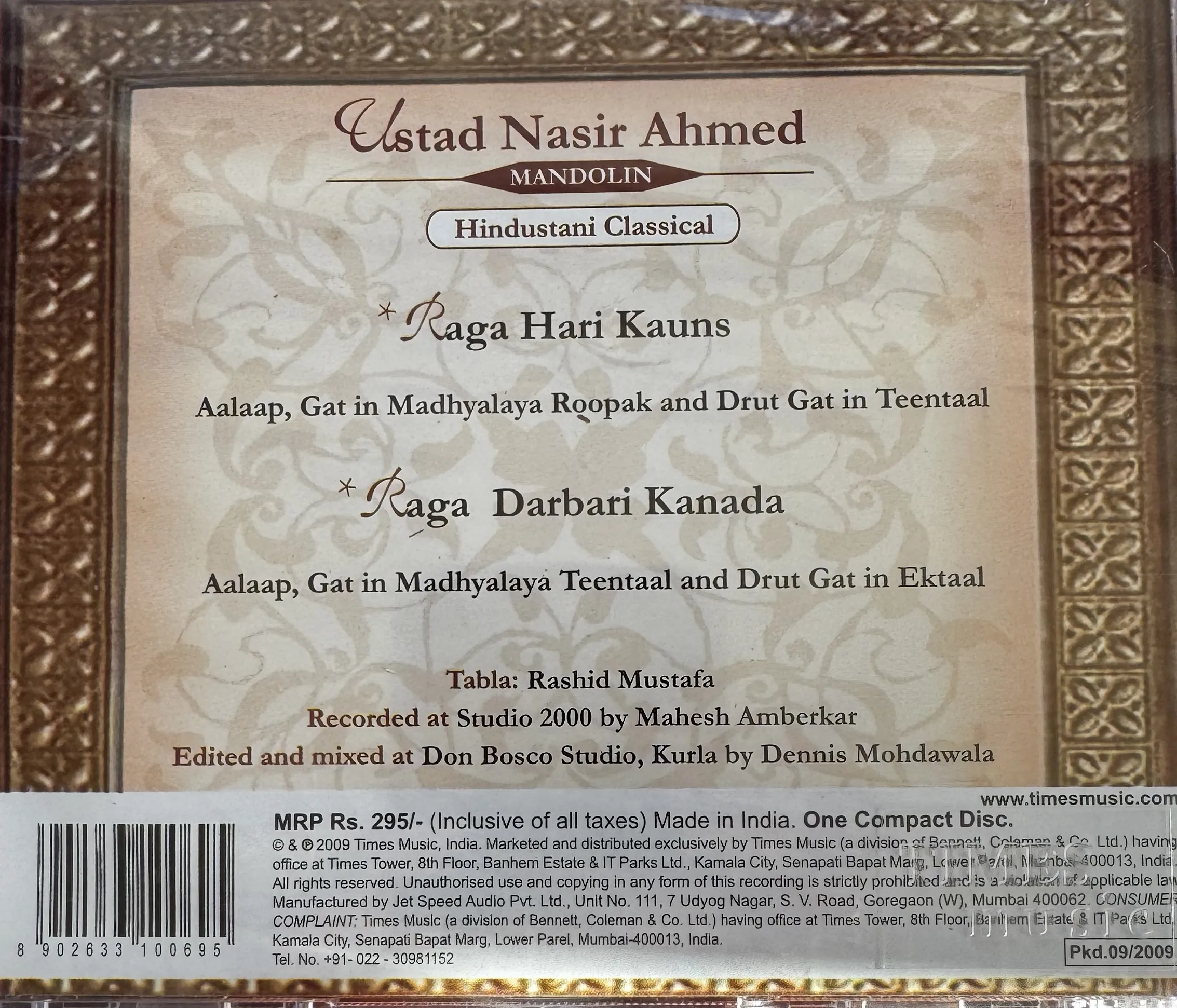 | Raga Darbari Kanada, Alap, Gat in Madhyalaya Teentaal and Drut Gat in Ektaal | Nasir Ahmed | Rasheed Mustafa Thirakawa | - |